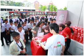 On March 18, 2011, over 400 members of the Boy Scout and Net Naree (girl scout) camps from Amphoe Cho Ai Rong, Narathiwat, visited TK Park and the B2S bookstore (with a collection of Thai books and international ones) at CentralWorld in Bangkok, where they also received sports gear from Super Sports and enjoyed delicious dishes at CRG. Accompanying the children, CPN Volunteers provided useful information to them. Welcoming the junior visitors, Khun Sanhachutha Chirathivat also gave them tokens.