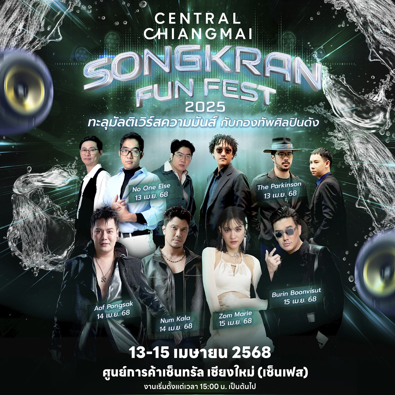 💦🔫 💙 สงกรานต์นี้! #เซ็นทรัลเชียงราย พร้อมสาด... ระเบิดความมันส์กับอุโมงค์น้ำขนาดใหญ่แบบชุ่มฉ่ำสะใจ สนุกเต็มที่ เปียกสุดใจ ไปกับเพื่อนซี้ 4 วันเต็ม! พร้อม LINE UP! 🎤 ศิลปินฮิตสุดฮอต ~