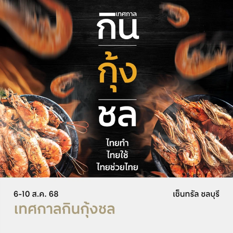🦐 6-10 ส.ค. 68 เทศกาลกินกุ้งชล พบกับกิจกรรมตักกุ้งราคาพิเศษ 📌 เซ็นทรัล ชลบุรี