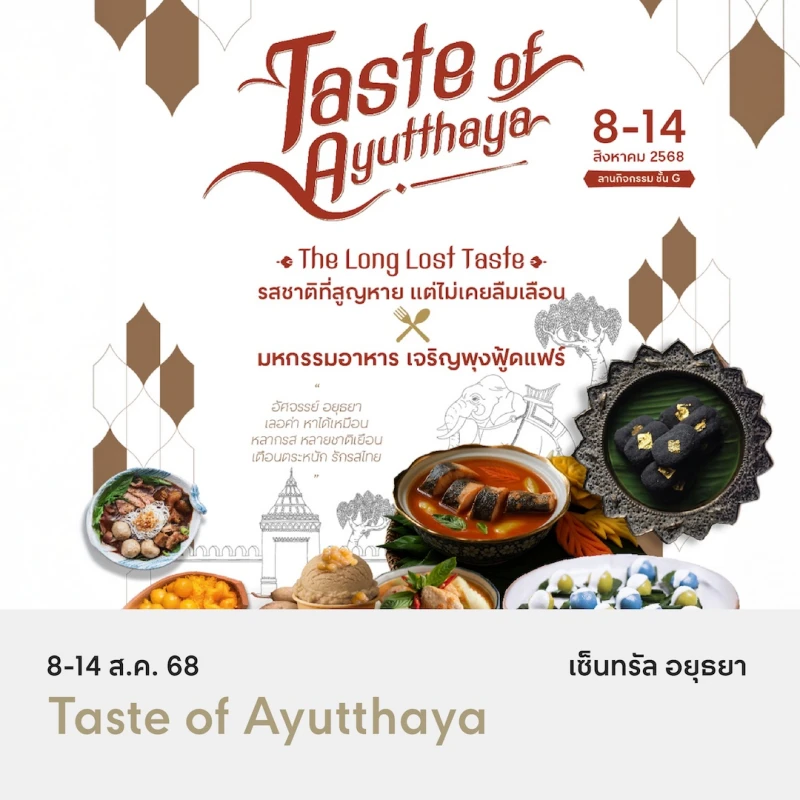 😋 8-14 ส.ค. 68 Taste of Ayutthaya งานมหกรรมอาหาร The Long Lost Taste รสชาติที่สูญหาย แต่ไม่เคยลืมเลือน มหกรรมอาหาร เจริญพุงฟู้ดแฟร์ 📌 เซ็นทรัล อยุธยา
