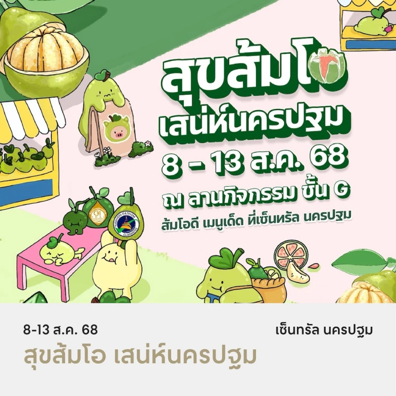 🍊 8-13 ส.ค. 68 งานสุขส้มโอ เสน่ห์นครปฐม พร้อมเสิร์ฟส้มโอดี เมนูเด็ดจากสวนดัง 📌 เซ็นทรัล นครปฐม