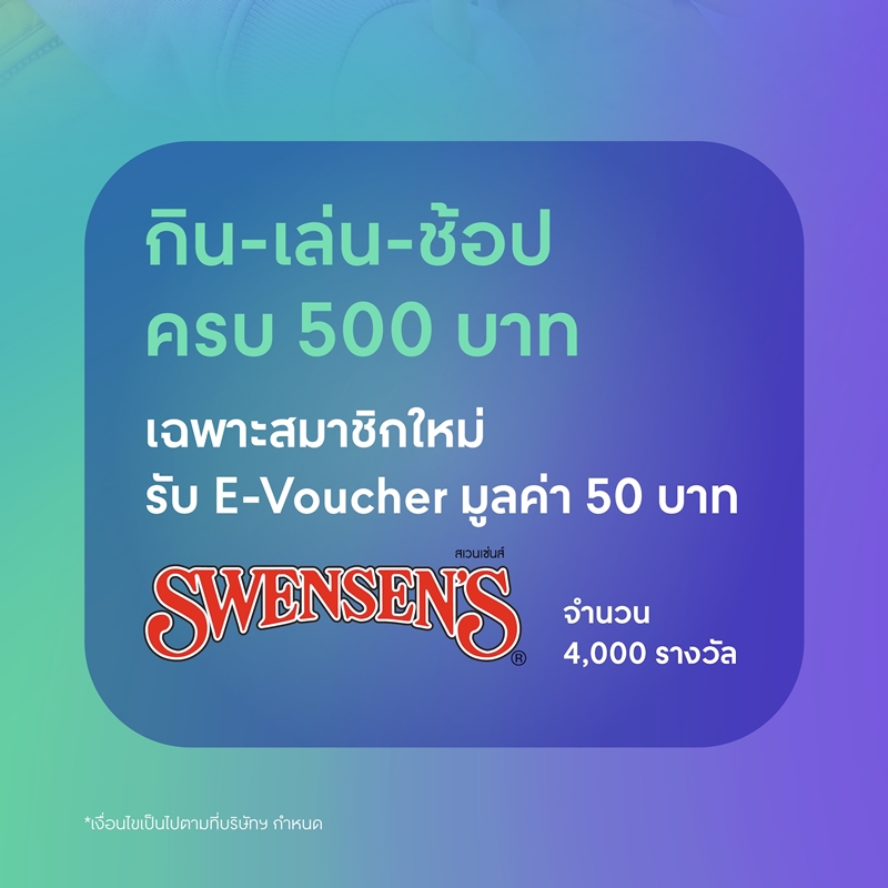 รับ Swensen’s E-Voucher* มูลค่า 50 บาท