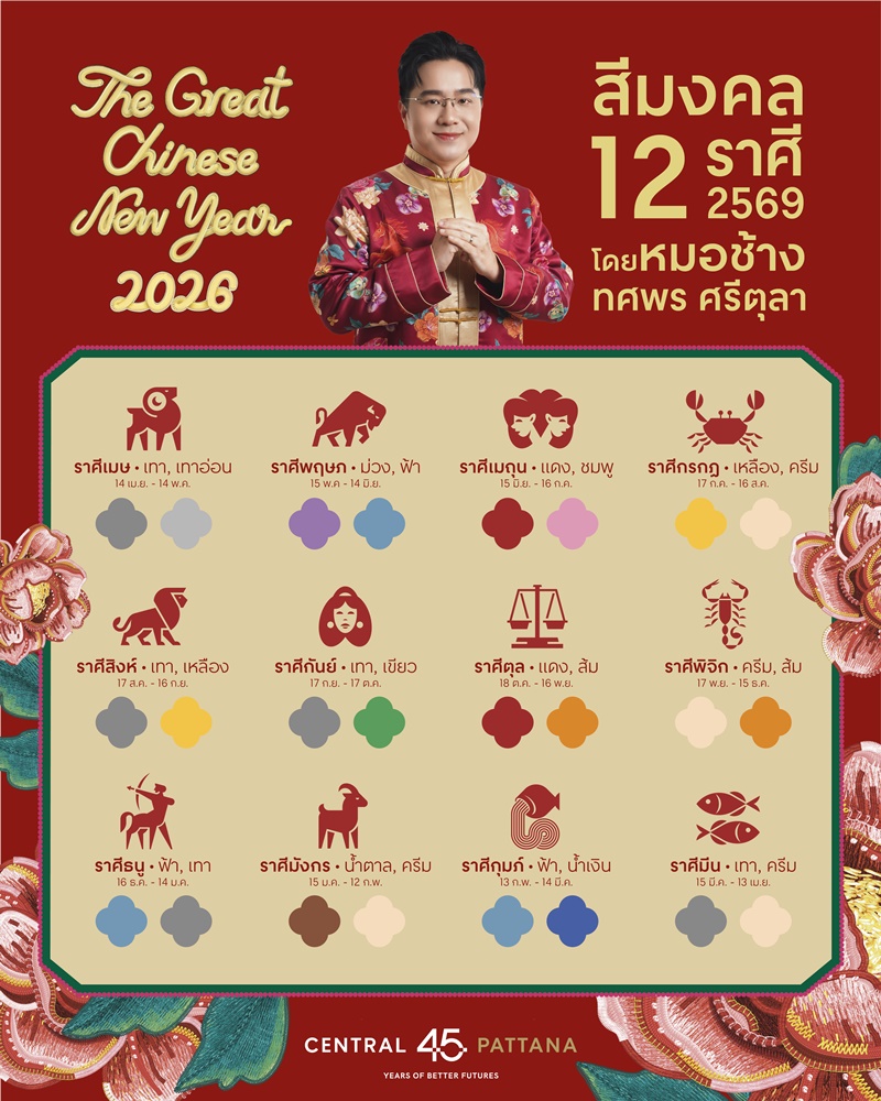 📢ใครอยากเฮง🔎 เล็งโพสต์นี้ #สีมงคล2026 รับตรุษจีน 🧧 💰โดยหมอช้าง ทศพร ศรีตุลา กับ The Great Chinese New Year 2026 ที่ศูนย์การค้าเซ็นทรัล