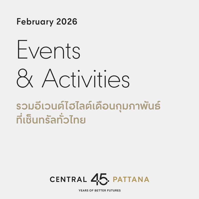 ความสนุกแบบครบทุกฟีล! มัดรวมอีเวนต์ไฮไลต์กุมภาพันธ์นี้ ตอบโจทย์ทั้ง สายดีไซน์ 🎨 สายเที่ยวตรุษจีน🐉 สายอินเลิฟ💗 สายกิน 🔥 สายดนตรี 🎶 และสายไลฟ์สไตล์ 🌊 ที่ศูนย์การค้าเซ็นทรัลทั่วไทย ✨