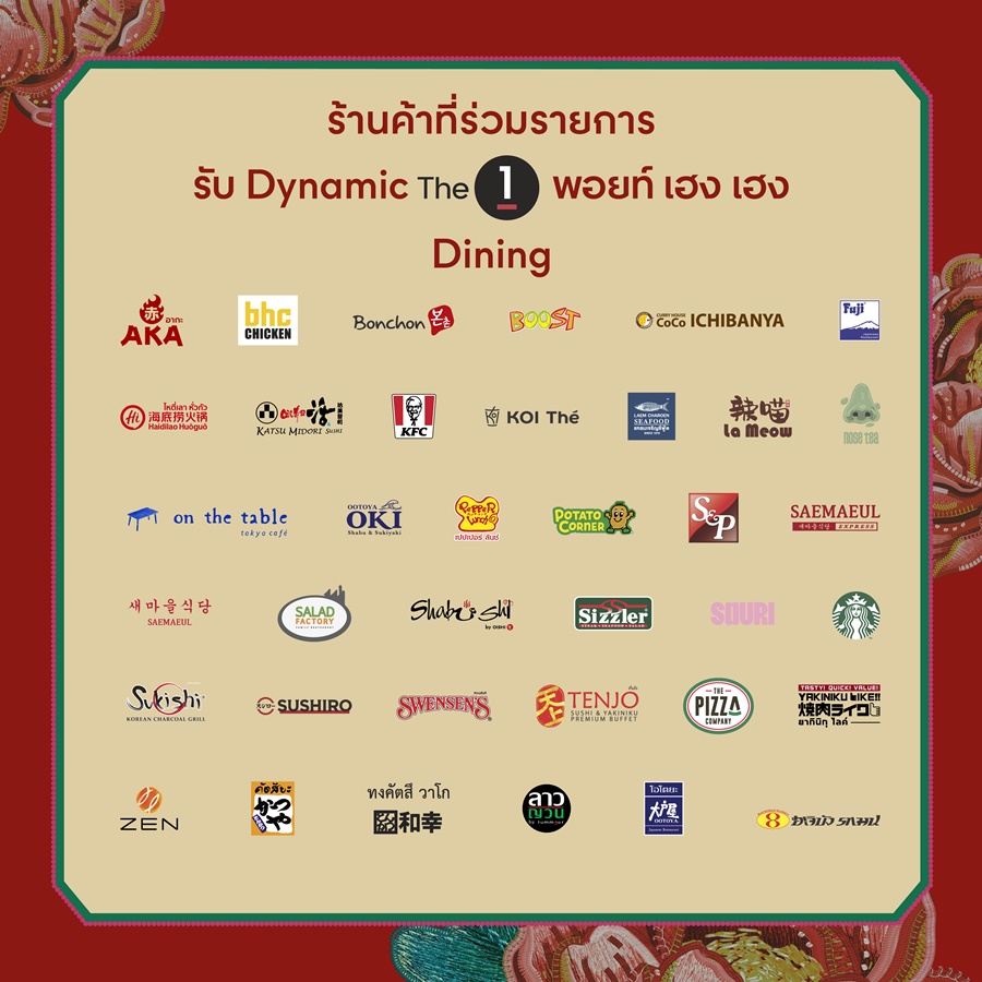 ✨รับ dynamic The 1 พอยท์เฮง เฮง รวมกว่า 11.6 ล้านพอยท์* เมื่อกิน–ช้อป จากร้านค้าในโซนพลาซาที่ร่วมรายการ ( สิทธิ์มีจำนวนจำกัด )