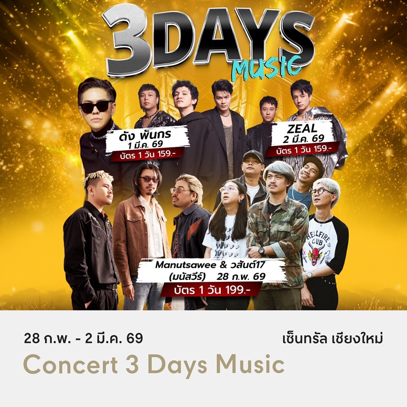 💗 28 ก.พ. 69 - 2 มี.ค. 69 Concert 3 Days Music ที่ เซ็นทรัล เชียงใหม่