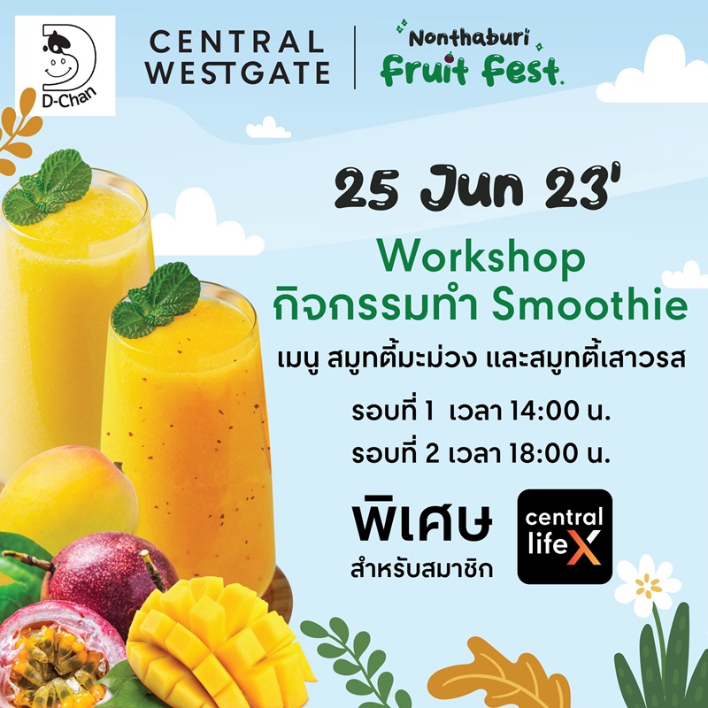 - วันที่ 25 มิถุนายน 2566 เวลา14.00 และ 18.00 น.กิจกรรมสาธิตวิธีการทำสมูทตี้สูตรพิเศษจากร้าน D-Chan Premium Milk