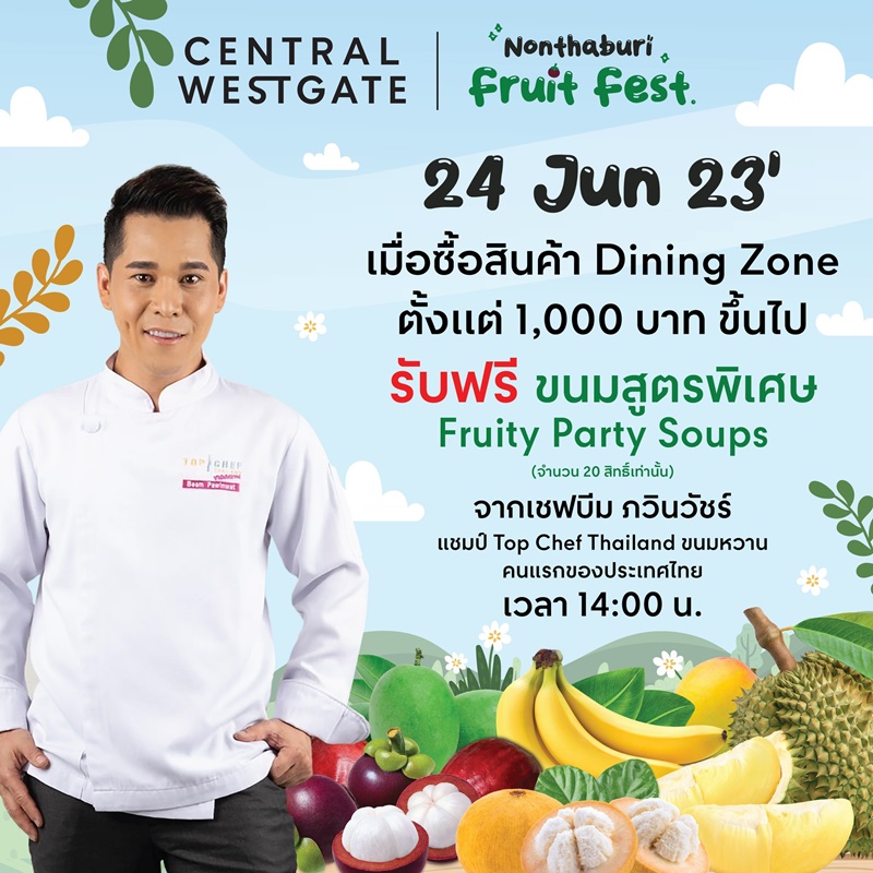- วันที่ 24 มิถุนายน 2566 เวลา 14.00 น. พบกับเชฟบีม ภวินวัชร์ โชคเศรษฐปวินท์ แชมป์ Top Chef Thailand ขนมหวาน คนแรกของประเทศไทย ที่จะมารังสรรค์เมนูสุดพิเศษ พร้อมให้ผู้ร่วมงานได้ลิ้มรสกัน