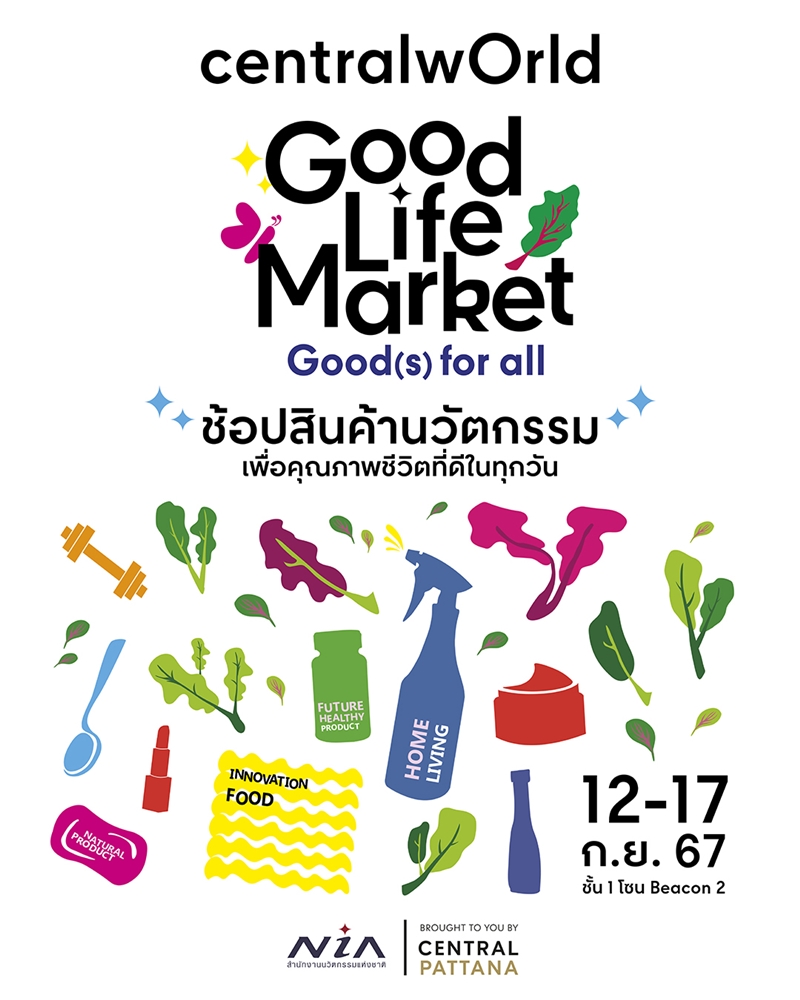 Bangkok – Central Pattana is joining hands with the National Innovation Agency (NIA) to transform centralwOrld into the ‘Good Life Market’ showcasing over 200 creative and innovative products from Thai innovators, supporting a better quality of life every day for shoppers around the world. Watch LIVE online shopping from entrepreneurs at the ‘Good Life Market’ daily from 12-17 September 2024, at Beacon 2, 1st floor, centralwOrld.
