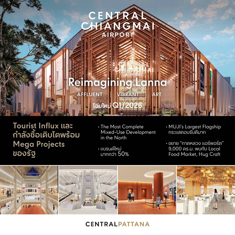 - The ‘Total Transformation’ strategy, with an investment of over 10 billion baht, will be implemented in high-growth and affluent areas, including ‘Central Bangna,’ ‘Central Pinklao,’ and ‘Central Chaengwattana,’ to meet the needs of the upper class and cater to the purchasing power of the CBD. Additionally, the strategy will elevate ‘Central Chiangmai Airport’ into a must-visit destination, significantly boosting tourist numbers and attracting more purchasing power from three northern provinces, in line with the plan to expand the airport and other mega projects