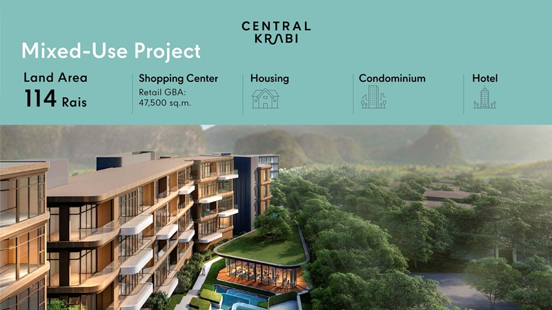 - Launching the mega mixed-use project: Central Krabi, with a total investment of 4.5 billion baht to promote the potential of ‘The World’s Leading Tourist Destination’, with large domestic and tourist income to benefit diverse people with unique lifestyles and high purchasing power.