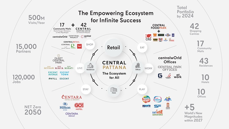 In order to provide the ultimate convenience for its customers, Wallaya fostered the idea of Retail-Led Mixed-Use Development as the forefront of her strategy to create “The Ecosystem For All” seamlessly linking together the company’s business units including Retail, Residential, Hotel, and Office establishments. Her concept of “Shop-Eat-Work-Play-Stay-Live” has become a key driving force for the company resulting in the launch of 42 shopping malls nationwide as well as 15 community malls, 43 residential projects, 10 hotels, and 10 office buildings, raising its ranking as the country’s No.1 retail and property development company.