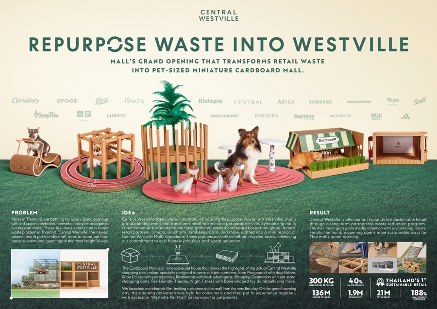 - Showcasing the power of Brand Collaboration, inviting leading brands to contribute recycled cardboard to create scenes for the launch advertisement, transforming it into a miniature version of 'Central Westville' where pets can experience Shop, Eat, Play.