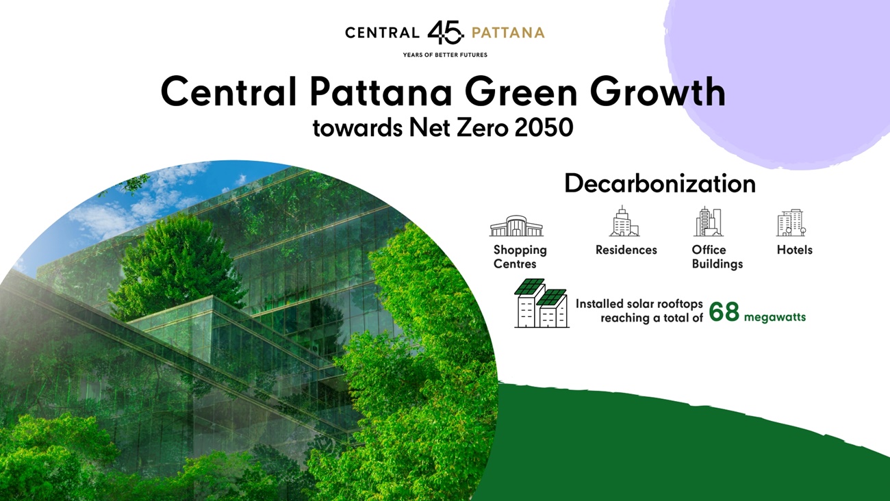 - Implementing the Green Growth initiative to drive greenhouse gas reduction, with a key focus on installing solar rooftops across Central Pattana projects, aiming to generate over 68 megawatts of clean energy, while also offering Green Solutions to both affiliated and external companies.