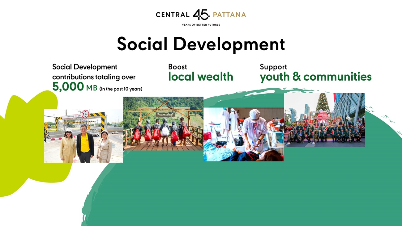 - People: Over the past 45 years, Central Pattana has continuously contributed to Thai society through both financial support and active engagement, totaling over 5 billion baht in the past decade. Our initiatives span infrastructure development, public spaces, education, and expanding opportunities within communities nationwide. We work directly with local communities through Central Group’s “Central Tham” to promote local wealth, create jobs, and distribute income. In addition, last year we partnered with the Ministry of Education to launch the “Happy Learning Infinite Opportunities” program to support the long-term development of children and youth.