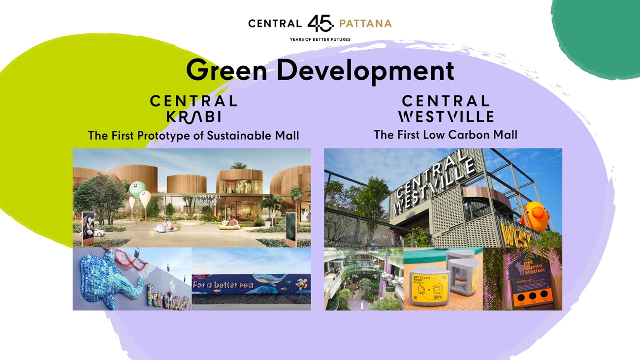 - Championing Place Making by developing world-class sustainable projects—highlighted by the launch of “Central Krabi,” Thailand’s first prototype of a sustainable mall, at the end of this year. The Green Partnership unites over 2,400 brands to cut carbon emissions, while Central Pattana has supported Thai communities for 45 years through both financial support and active engagement.