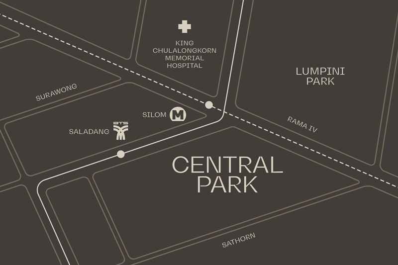 Central Park Bangkok is in the Dusit Central Park mixed-use project—consisting of a 5-star hotel, a new shopping centre, a world-class office building, etc. Situated at Bangkok's most prestigious address, the project lies at the "Sala Daeng Intersection", where Silom Road meets Rama IV Road with BTS and MRT connections.