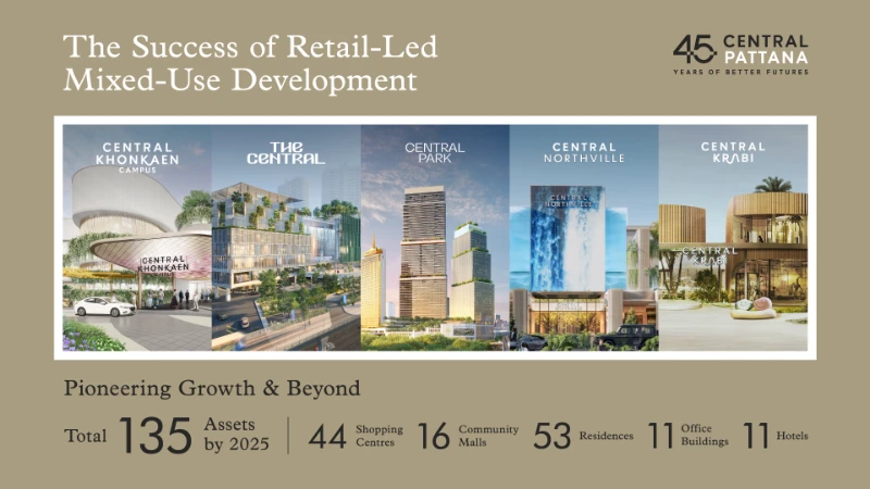 Ms. Wallaya Chirathivat, President & CEO of Central Pattana Plc., stated, “Over the past 45 years, Central Pattana has taken great pride in developing cities and key districts nationwide through a diverse portfolio of shopping centres, residential projects, office buildings, and hotels. Our growth has been driven by our Retail-Led Mixed-Use Development strategy, which seamlessly connects all urban components and delivers strong, sustainable growth for both our business and the broader ecosystem.