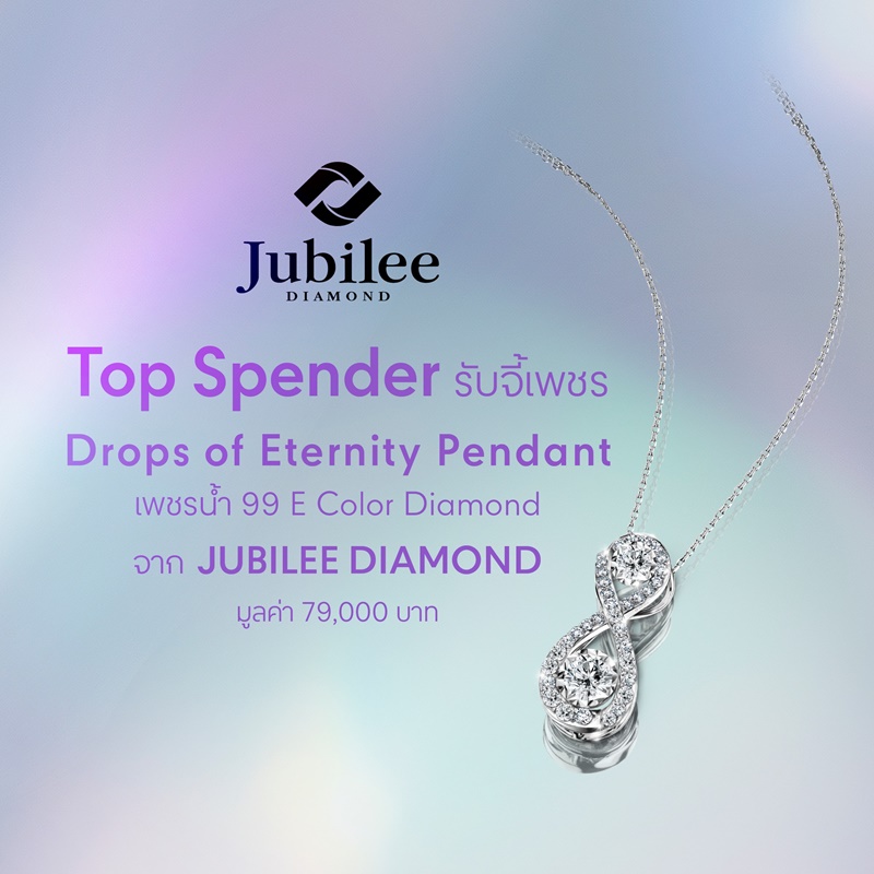 ✅ Top Spender* ลำดับแรก รับจี้เพชร Drops of Eternity Pendant (ไม่รวมสร้อย) เพชรน้ำ 99 E Color Diamond จาก Jubilee Diamond น้ำหนักเพชรรวม 0.45 กะรัต มูลค่า 79,000 บาท