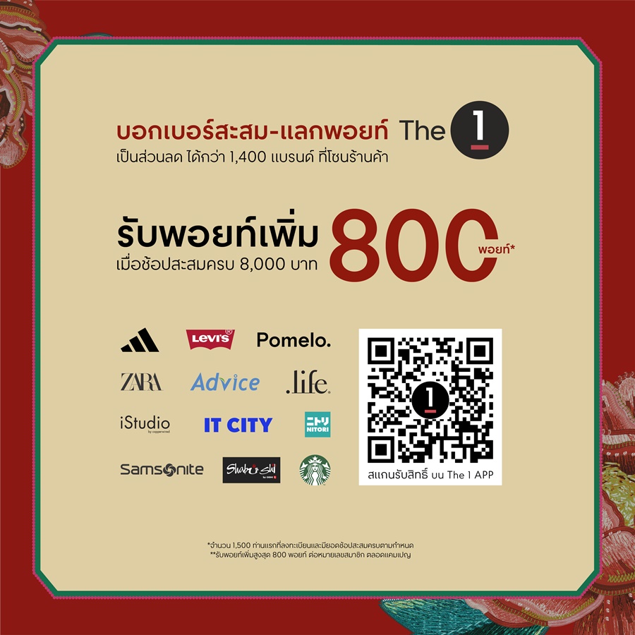 บอกเบอร์สะสม-แลกพอยท์ The 1 เป็นส่วนลดได้กว่า 1,400 แบรนด์ที่โซนร้านค้า