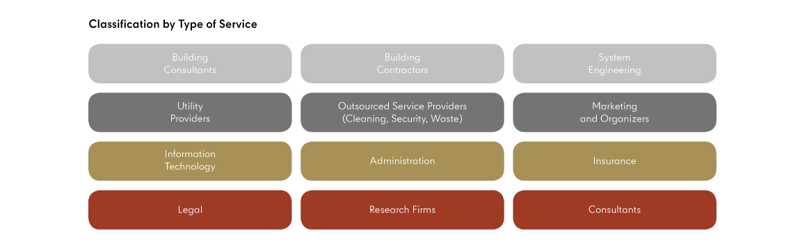 - Spending analysis of annual procurement value as shown in the table “Spending-Analysis Classification” and "Classification by Type of Service".