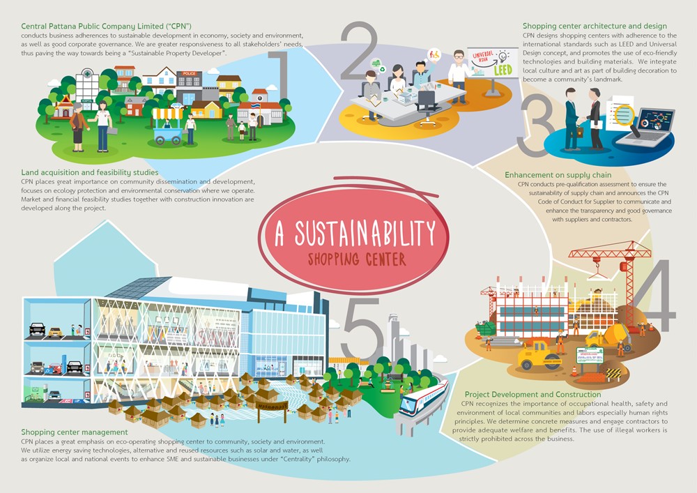Central Pattana defines supplier management plans according to the supply chain management policy emphasizing mutual transparency and fair trading with minimal impacts on communities, society, and the environment while considering human rights and safety in the supply chain, that is, suppliers in business development and construction, suppliers in shopping center and market development, and suppliers in organization management as risk from business are unable to handle alone, the company requires the cooperation of business partners and contractors in managing together.