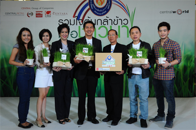 นริศ เชยกลิ่นรองกรรมการผู้จัดการใหญ่ สายงานการเงิน บัญชี และ บริหารทรัพย์สิน บริษัท เซ็นทรัลพัฒนา จำกัด (มหาชน) ศาสตราจารย์กิตติคุณ นพ.ดำรง เหรียญประยูร รองประธานมูลนิธิอาสาเพื่อนพึ่ง (ภาฯ) ยามยาก สภากาชาดไทย ผู้อำนวยการสำนักงานอาสากาชาด ร่วมกัน เปิดตัวโครงการ "รวมใจต้นกล้าเพื่อชาวนา" กิจกรรมการกุศลระดมเงินบริจาคสมทบมูลนิธิอาสาเพื่อนพึ่ง(ภาฯ)ยามยาก สภากาชาดไทย เพื่อเป็นต้นทุนจัดเตรียมต้นกล้าข้าวสำหรับฟื้นฟูชาวนาผู้ประสบภัยน้ำท่วม โดยมี ดร.ณัฐกิตติ์ ตั้งพูลสินธนา ดร.ปาริชาติ ชุมสาย ณ อยุธยา ภัสสร สิทธินววิธ ณัฐนิช โชติสรยุทธ์ และ รัชภาคย์ วิไลโรจน์ มาร่วมงาน ณ ชั้น 1 โซนเอเทรี่ยม ศูนย์การค้าเซ็นทรัลเวิลด์ (วันนี้ 7 ตุลาคม 2554 )
