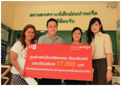 คุณนันทวัฒน์ เนาวรัตน์พงษ์ ผู้จัดการทั่วไปศูนย์การค้าเซ็นทรัลพลาซา รัตนาธิเบศร์ มอบเงินบริจาค 17,000 บาท เพื่อสนับสนุนการดำเนินงานของสถานสงเคราะห์เด็กอ่อนปากเกร็ด โดยได้รับเกียรติจาก ท่านรองผู้ปกครองสถานสงเคราะห์เด็กอ่อนปากเกร็ด เป็นผู้รับมอบ เมื่อวันที่ 3 มีนาคม 2554