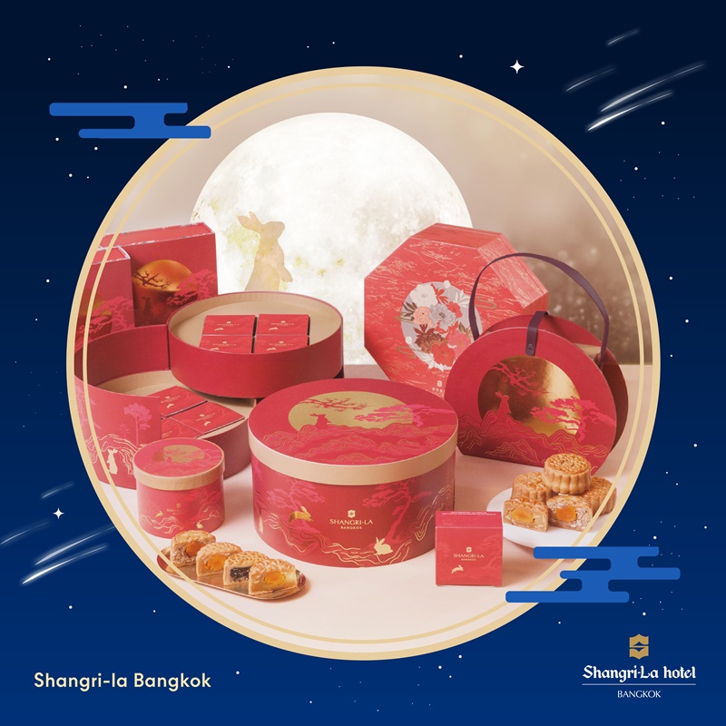 🥮 ขนมไหว้พระจันทร์ธีม ‘𝐌𝐨𝐨𝐧𝐥𝐢𝐭 𝐂𝐢𝐭𝐲, 𝐇𝐞𝐚𝐫𝐭𝐟𝐞𝐥𝐭 𝐒𝐡𝐚𝐧𝐠𝐫𝐢-𝐋𝐚’ ในปีนี้เป็นการเฉลิมฉลองตำนานของกระต่ายหยกผู้เป็นสหายของเทพธิดาแห่งดวงจันทร์ฉางเอ๋อ โดดเด่นด้วยโทนสีแดงตัดกับสีทองอันหรูหราเพื่อเสริมพรอันเป็นสิริมงคลจากสรวงสวรรค์