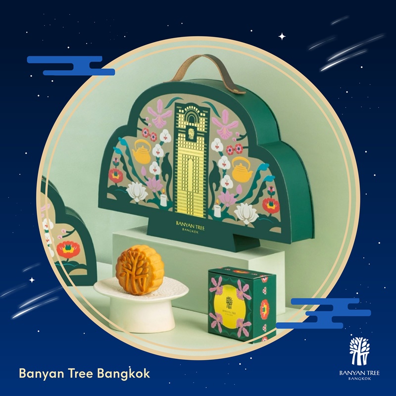 ขนมไหว้พระจันทร์ในกล่องดีไซน์รูปต้นไทรอันเป็นเอกลักษณ์จากโรงแรมบันยันทรี มีทั้งรสชาติคลาสสิกยอดนิยม ไปจนถึงรสสมัยใหม่อย่าง มอคค่าคาราเมล, ช็อกโกแลตพีนัทบัตเตอร์ และเจลลีแชมเปญลิ้นจี่ดอกหอมหมื่นลี้ รสชาติใหม่ประจำปีนี้ "มัทฉะถั่วแดง" ผสานความเข้มละมุนของมัทฉะพรีเมียมกับความหวานนุ่มของไส้ถั่วแดง
