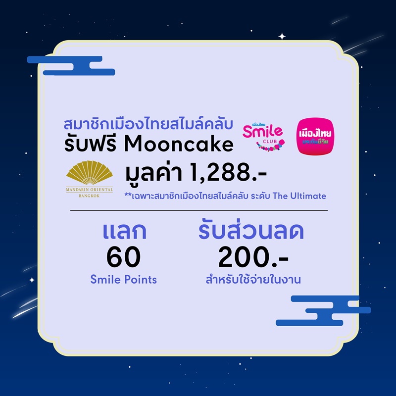 😀 สมาชิกเมืองไทยสไมล์คลับ รับฟรี* Mooncake มูลค่า 1,288.-