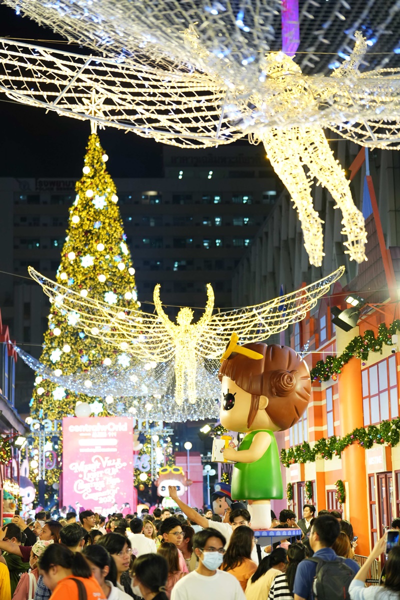 - Immersive Experience หมู่บ้าน Merry Ville 12 โซน เชื่อมโยงในและนอกศูนย์ฯ ครั้งแรก หิมะตกจาก Galderma, เสียงหวูดและควันจากรถไฟ Coca Cola Merry Express, Flying Angel ยักษ์ 3 ตัว ตอกย้ำ ‘World’s Best Festive Destination’