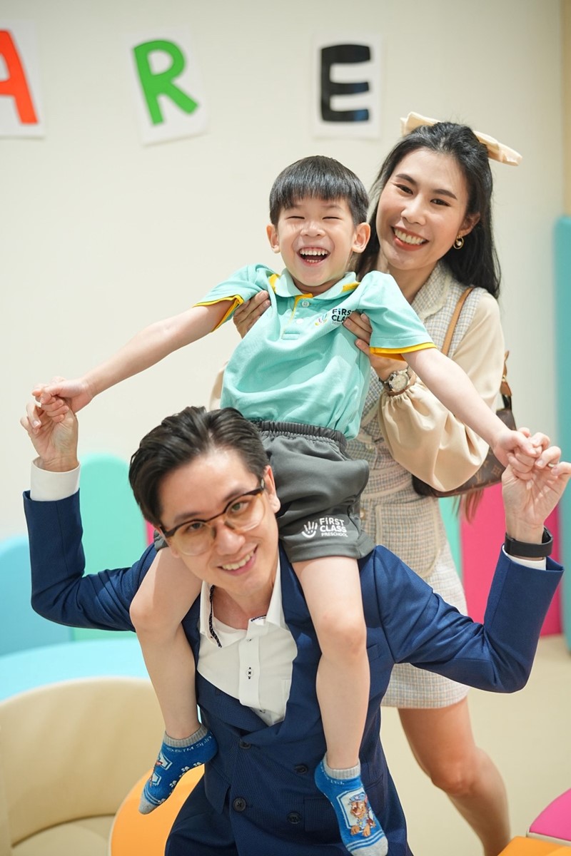 คุณชัยรัช แสนมหาชัยภา ผู้ปกครองนักเรียนปัจจุบัน ให้ความเห็นเกี่ยวกับการเลือกโรงเรียน “การเลือกโรงเรียนให้ลูกไม่ใช่เรื่องง่าย เด็กต้องมีความพร้อมด้านพัฒนาการตามวัย ขณะที่โรงเรียนก็ต้องมีความพร้อมในการดูแลและส่งเสริมการเรียนรู้ First Class Preschool มีหลักสูตรที่เน้นการเรียนรู้อย่างมีความสุขจากสิ่งแวดล้อมรอบตัว ปัจจัยสำคัญคือความสุขและความปลอดภัยของเด็ก ทั้งสภาพแวดล้อมที่ปลอดภัยจากฝุ่น PM2.5 และบุคลากรที่ใส่ใจและเข้าใจเด็กเล็กในทุกอารมณ์อย่างแท้จริง รวมไปถึงการให้ความสำคัญกับการพัฒนา EF ตั้งแต่เล็กที่จะช่วยให้เด็กมีความยับยั้งชั่งใจ จัดการอารมณ์ตัวเองได้ และปรับตัวให้ทันโลกที่เปลี่ยนแปลงไป ที่สำคัญ First Class Preschool ยังช่วยให้พ่อแม่เข้าใจลูกได้อย่างลึกซึ้งและเติบโตไปพร้อมกับลูกอีกด้วย”
