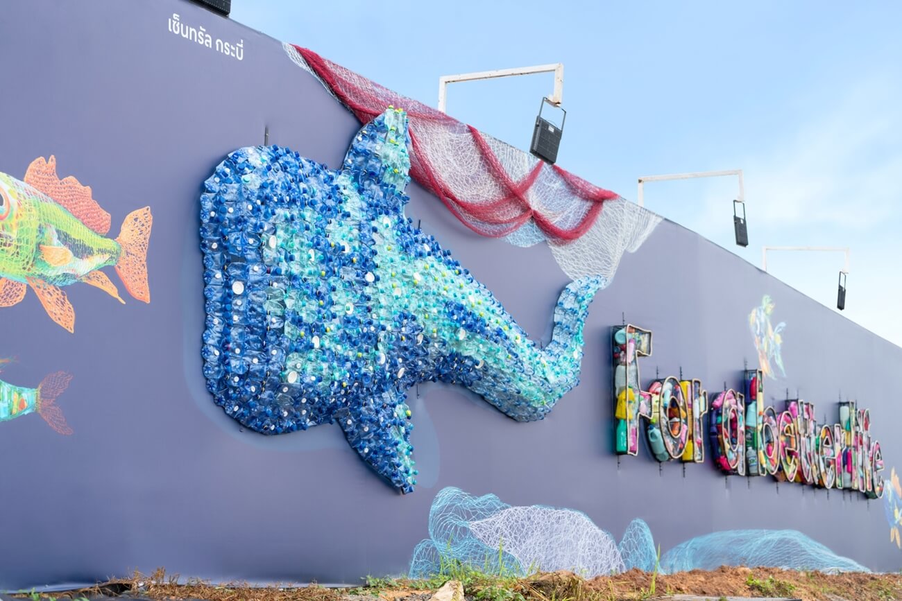- สะท้อนความมุ่งมั่น For a Better Sea, For a Better Life ของการเติมเต็มศักยภาพเมือง เปลี่ยนขยะพลาสติก 3,500 ชิ้น น้ำหนักรวม 360 กิโลกรัม สร้างสรรค์ผลงานศิลปะ Eco-Art บนรั้วโครงการ