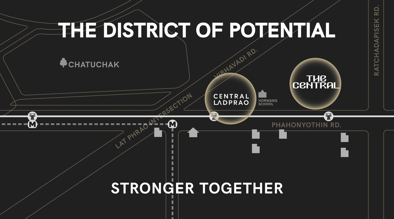 ‘The Central’ พหลโยธิน (เดอะ เซ็นทรัล) เป็น The Future Place for All ตั้งอยู่บนที่ดินกว่า 49 ไร่ มีพื้นที่ศูนย์การค้า (GBA) 460,000 ตร.ม. ศูนย์การค้าระดับ Flagship แห่งอนาคตที่จะรองรับไลฟ์สไตล์ใหม่สำหรับทุกคน เป็น Gateway ดึงดูดดีมานด์ใหม่จาก Catchment กรุงเทพฯ ตอนบน และ Quality Shoppers จากจังหวัดใกล้เคียง โดยจะเติบโตควบคู่กับ เซ็นทรัล ลาดพร้าว ซึ่งเป็นมิกซ์ยูสแห่งแรก และเป็นแลนด์มาร์กของย่านมาพร้อมกับที่เราก่อตั้งบริษัทฯ มา 45 ปี เราจึงเข้าใจผู้บริโภคเป็นอย่างดี ปัจจุบันมีดีมานด์ที่เติบโตจากความหนาแน่นของประชากรที่เพิ่มขึ้น และกลุ่มลูกค้าใหม่ จึงมีศักยภาพที่พร้อมสำหรับการมีศูนย์การค้าเซ็นทรัล 2 แห่ง ซึ่งจะช่วยเติมเต็มและส่งเสริมความเจริญของย่านนี้ โดย The Central พหลโยธิน จะดึงดูด Global Brands มาเปิด Flagship Store ครั้งแรกในไทยเช่นเดียวกับที่ประสบความสำเร็จมาแล้วที่เซ็นทรัลเวิลด์ โดยเตรียมเปิดช่วง Q4/2569 และยังมีแผน Development เพิ่มเติมในอนาคต