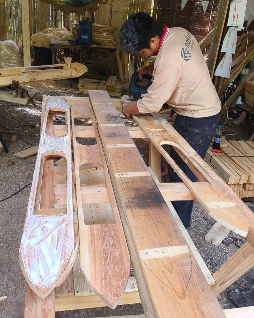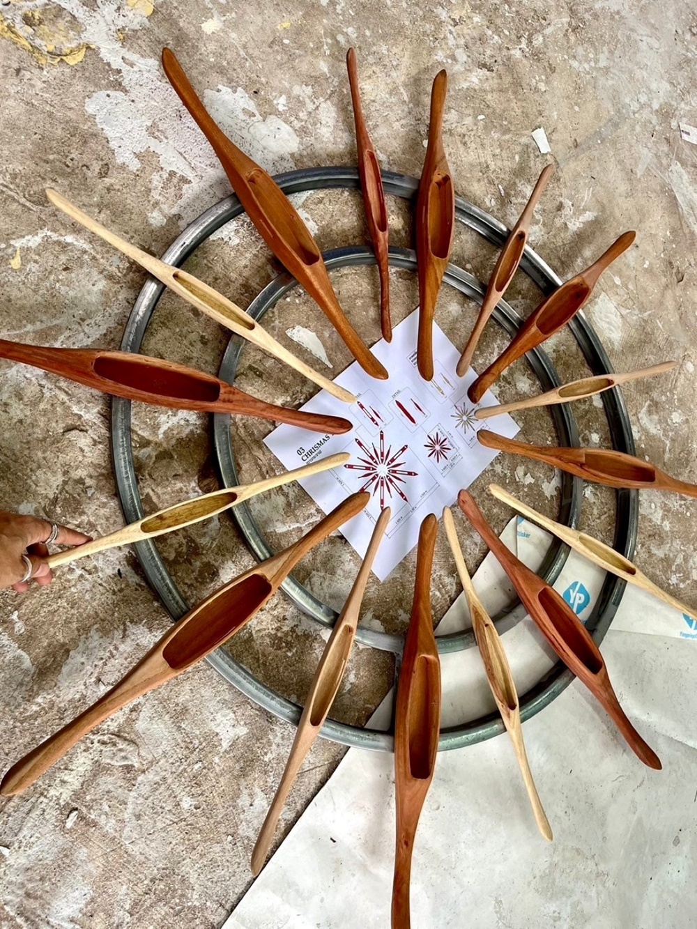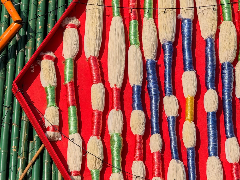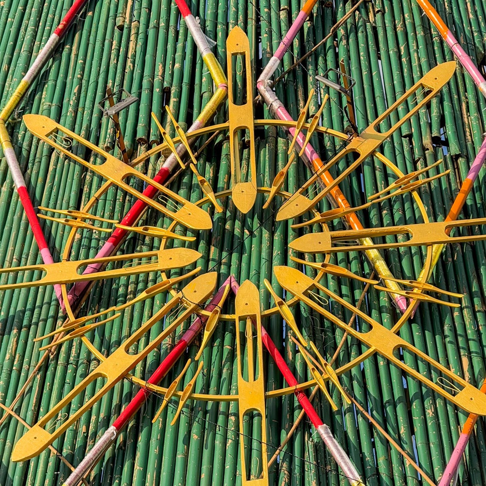 โดยผลงาน “คัก-คริส-มัด” เป็นต้นคริสต์มาสแบบ Heart-Made & Handcraft ทำมือทั้งต้น ถ่ายทอดเสน่ห์ของ ‘ลำหมี่’ ที่ประกอบการมัดและย้อมจนเกิดเป็นลวดลายสีแดง-ทองอันงดงาม สะท้อนภูมิปัญญาของอีสานแบบร่วมสมัย เน้นความยั่งยืนผ่านการใช้วัสดุจากชุมชนที่สามารถนำกลับมาใช้ซ้ำและต่อยอดคุณค่าต่อไปได้ ตั้งแต่ ไม้ไผ่ ที่ใช้เป็นเลเยอร์ชั้นแรกปิดผิวโครงเหล็กของต้นคริสต์มาส และเป็นวัสดุ Low Carbon ที่สามารถส่งต่อให้เครือข่ายเกษตรกรนำไปสร้างเล้าเป็ด เล้าไก่ หรือโรงเรือนเกษตรกรรม และวัสดุอย่าง เชือก ด้าย กระสวยไม้ ที่ออกแบบรวมกันเป็นรูปดาว ก็นำกลับมา Re-Use & Re-Design สร้างสรรค์เป็นโต๊ะอเนกประสงค์หรือโต๊ะทานอาหารสำหรับบ้านเด็กกำพร้าในจังหวัดขอนแก่น วัสดุและการประกอบทั้งหมดเกิดจากฝีมือช่างคนขอนแก่น ซึ่งนอกจากจะสร้างรายได้แล้ว ยังสะท้อนความภาคภูมิใจของชุมชน และจุดประกายความสุขจากต้นคริสต์มาสที่ส่งต่อไปยังผู้คนได้ ด้วยเหตุนี้ “คัก-คริส-มัด” จึงไม่ใช่เพียงงานหัตถกรรมประดับเมือง แต่เป็นตัวอย่างของการใช้เทศกาลเป็นพื้นที่สร้างสรรค์ เปิดโอกาสให้ชุมชนมีส่วนร่วม สร้างรายได้ และส่งต่อแรงบันดาลใจจากท้องถิ่นสู่ผู้คนทั่วประเทศ