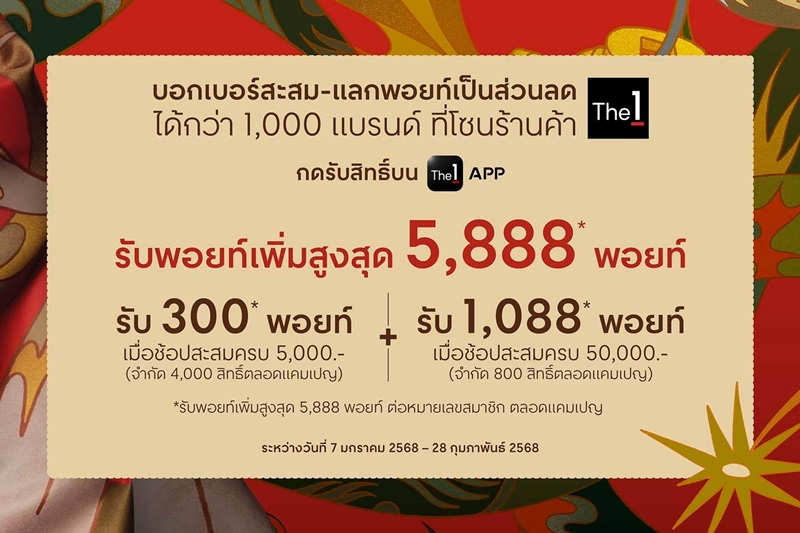 รับพอยท์เพิ่มสูงสุด 5,888 พอยท์* กดลงทะเบียนก่อนช้อป คลิก! https://go.the1.co.th/UohD/5et23sa3