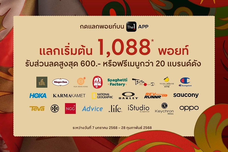 สมาชิก The 1 เฮงกว่าใคร! แค่มา ช้อปฉลองตรุษจีน The Great Chinese New Year 2025 ที่ศูนย์การค้าเซ็นทรัล ทั่วประเทศ มะเส็ง มาเฮง มารับพอยท์ The 1 เพิ่มสูงสุด 5,888 พอยท์ พร้อมแลกพอยท์ รับส่วนลด หรือฟรีเมนู