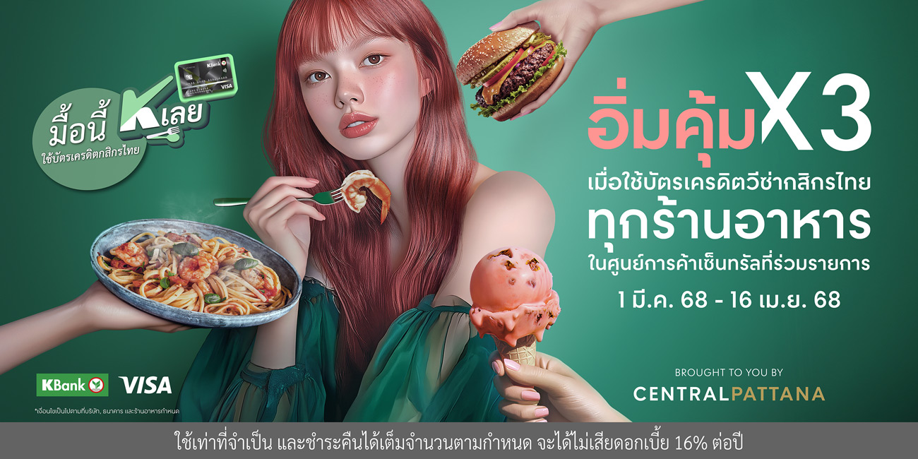 💳 ดีลสุดคุ้ม รับซัมเมอร์ “มื้อนี้ K เลย” เมื่อจ่ายด้วยบัตรเครดิตวีซ่ากสิกรไทย ทุกร้านอาหารในศูนย์การค้าเซ็นทรัลที่ร่วมรายการ