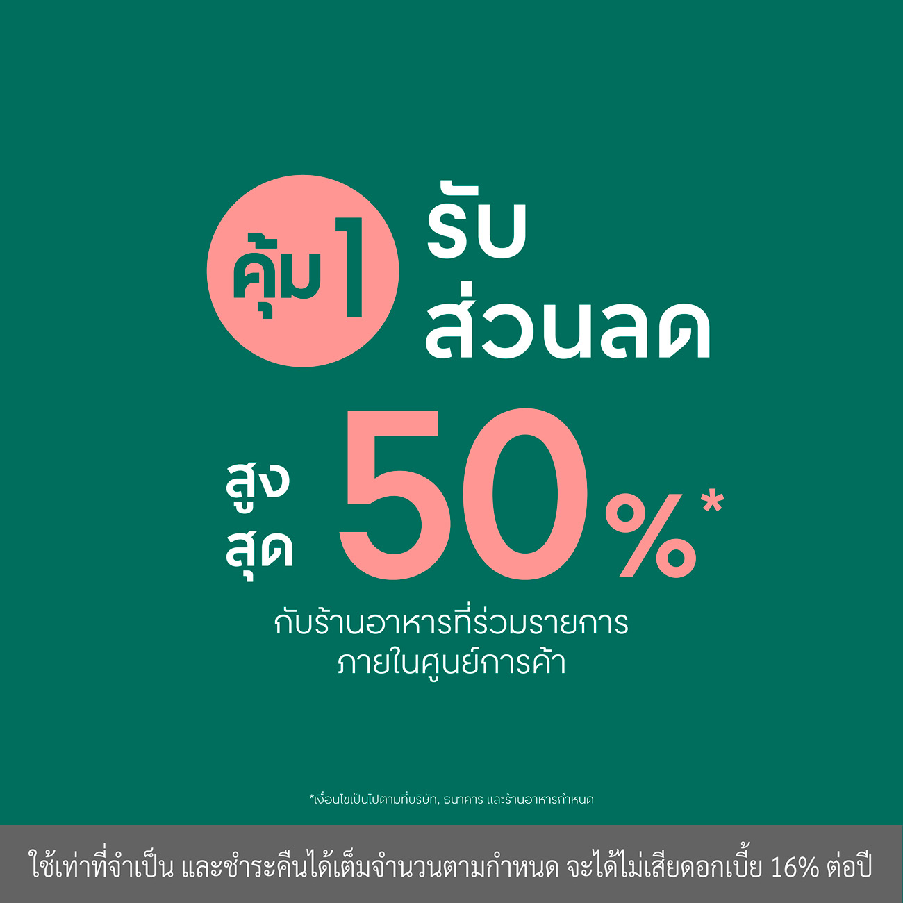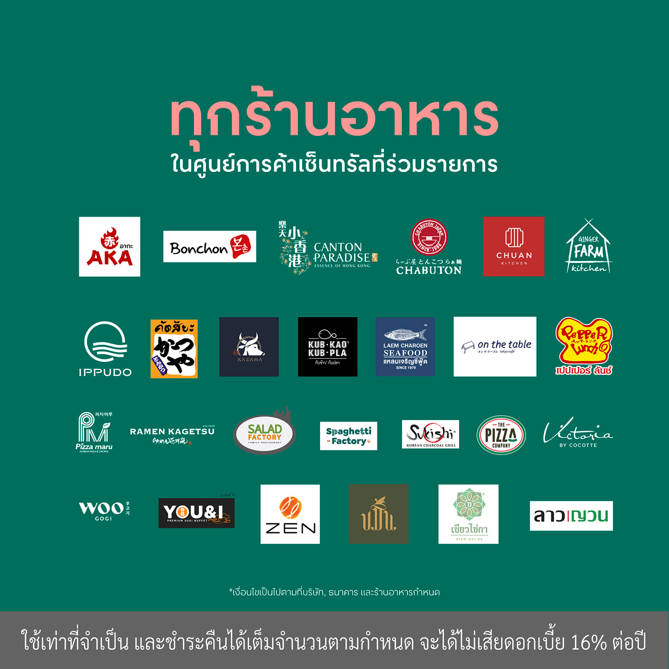 *เงื่อนไขเป็นไปตามที่บริษัท, ธนาคาร และร้านอาหารกำหนด