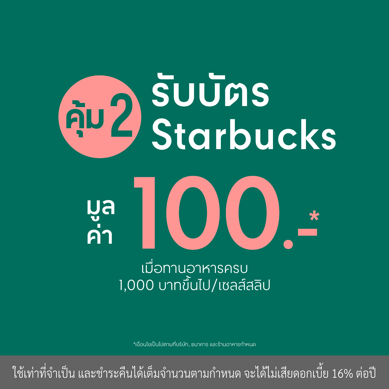 (จำกัดรับบัตร Starbucks สูงสุด 100 บาท/ท่าน/วัน และสูงสุด 300 บาท/ท่าน/ตลอดรายการ)