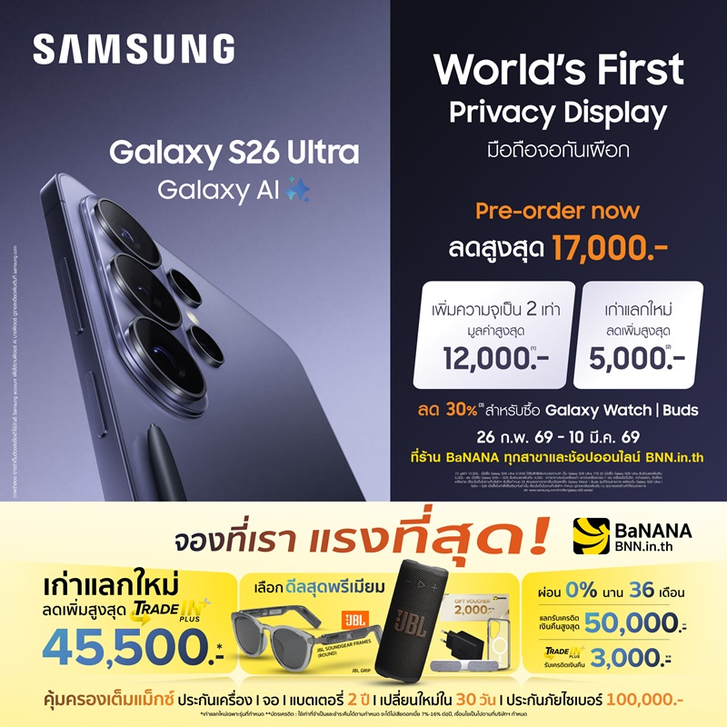🚀 จอง Samsung S26 Ultra ที่ BaNANA โปรแรงที่สุด!