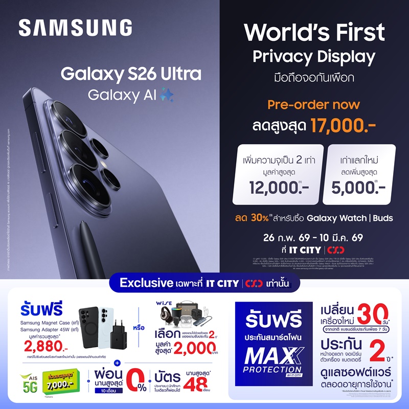 🛒 หรือช่องทางออนไลน์ : https://bit.ly/SamsungS26Series_Preorder_ITCITY