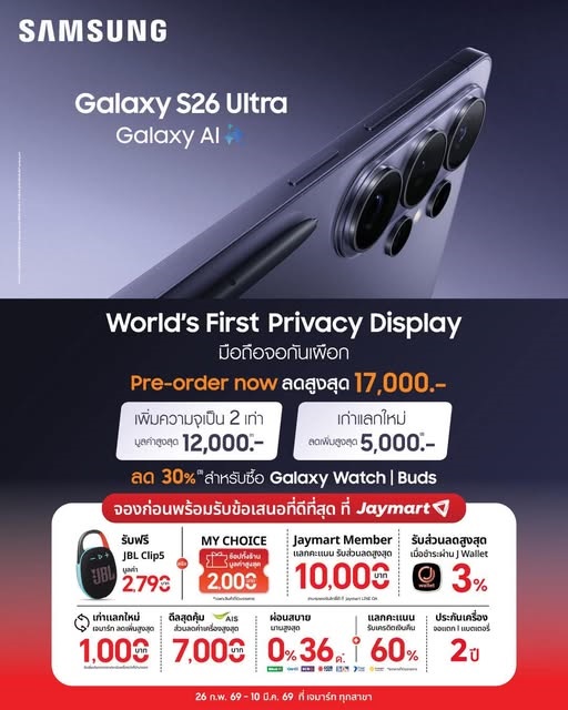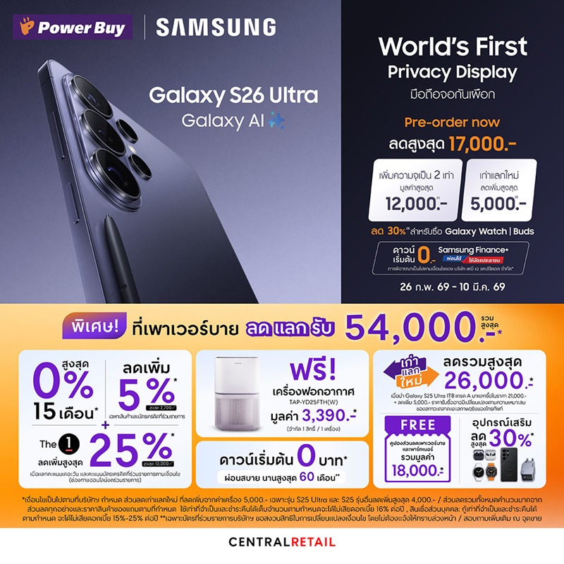 #รวมทุกดีลสุดเริ่ด #เปิดพรีออเดอร์ ขั้นกว่าของความ Privacy ครั้งแรกของโลก Samsung Galaxy S26 Ultra มือถือจอกันเผือก ช้อปก่อนใคร คุ้มกว่าใคร ที่ศูนย์การค้าเซ็นทรัล ทั่วประเทศ