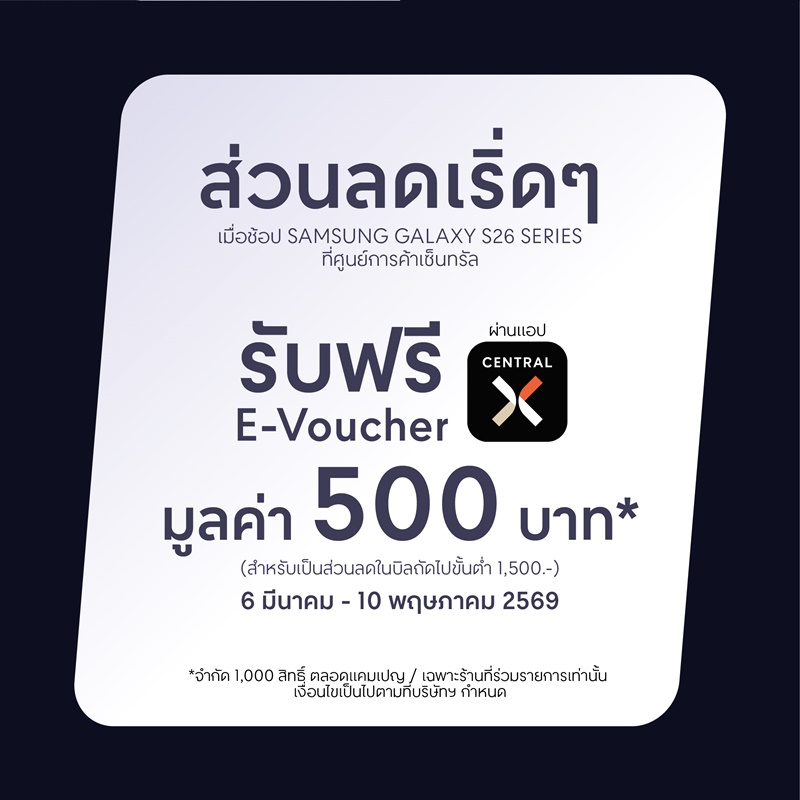 💳 รับ VOUCHER มูลค่าสูงสุด 2,000.- สำหรับลูกค้าที่จอง S26 Series สำหรับซื้อ ACCESSORY ที่ร่วมรายการ